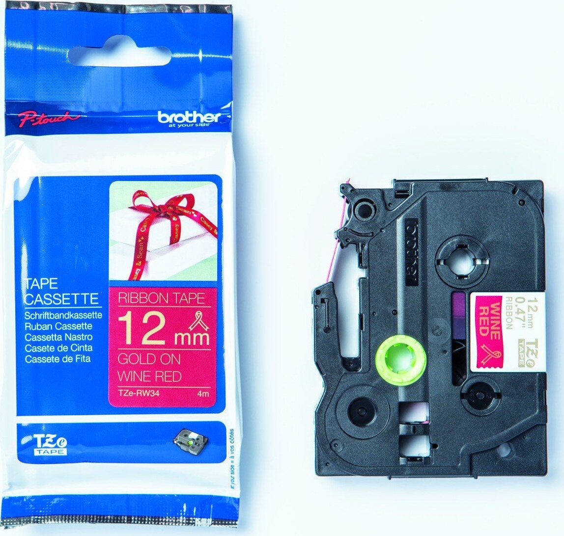 Brother - Tze-rw34 Prints Gold Text On Burgundy Tape