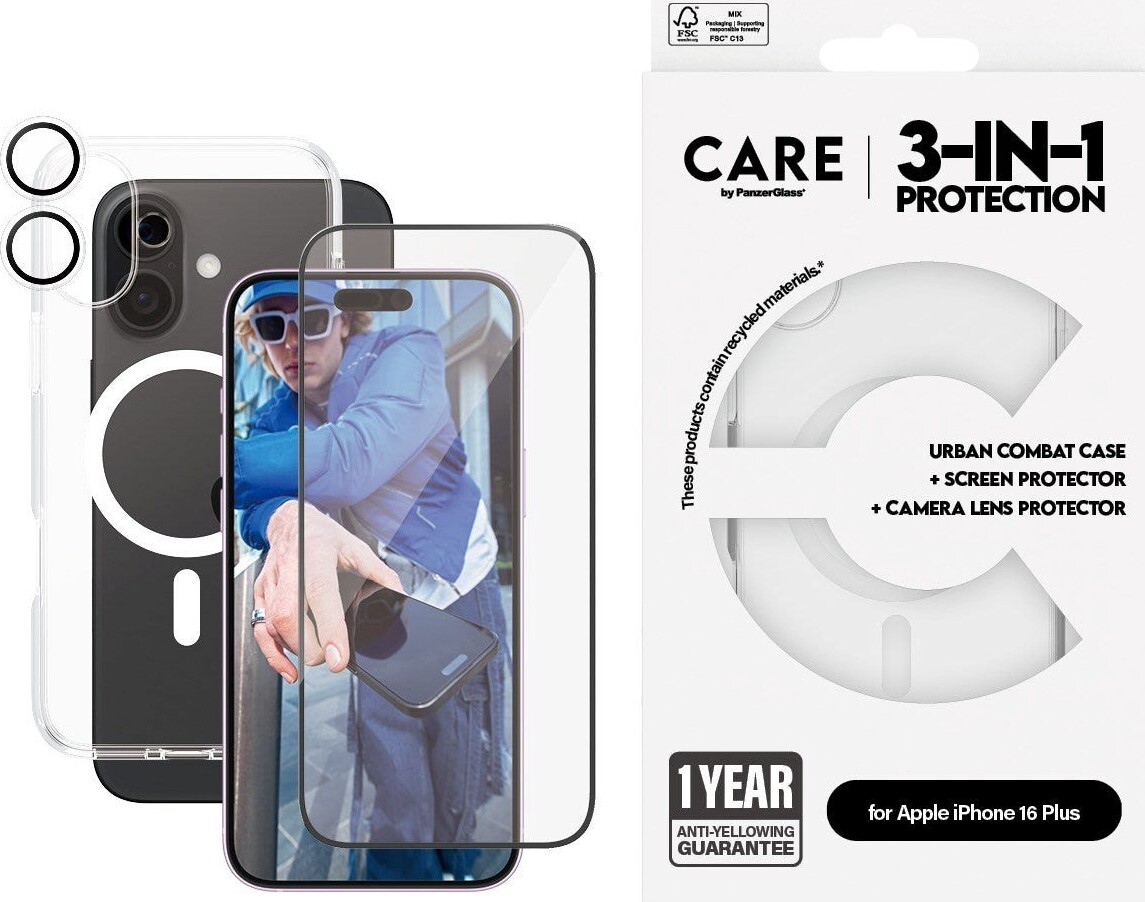 Care By Panzerglass - Iphone 16 Plus - 3-in-1 Cover Sæt - Gennemsigtig