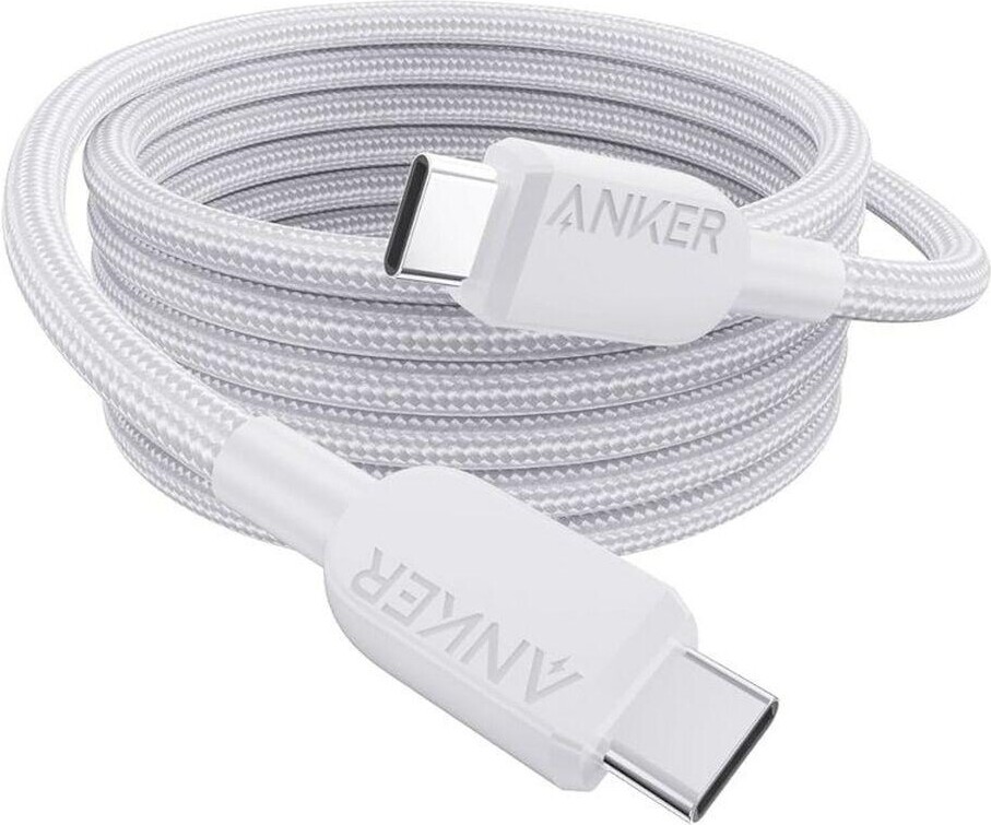 Anker - Usb-c Til Usb-c Kabel (1,8 M, 240w, Flettet) - Hvid: