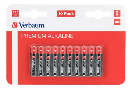 Verbatim AAA Alkaline batterier, 1.5V, 10-pakke Verbatim's AAA batteries are the smallest model in the Verbatim range. They are recommended for use in devices such as MP3 players, cameras and toys that require constant power for long periods of time.