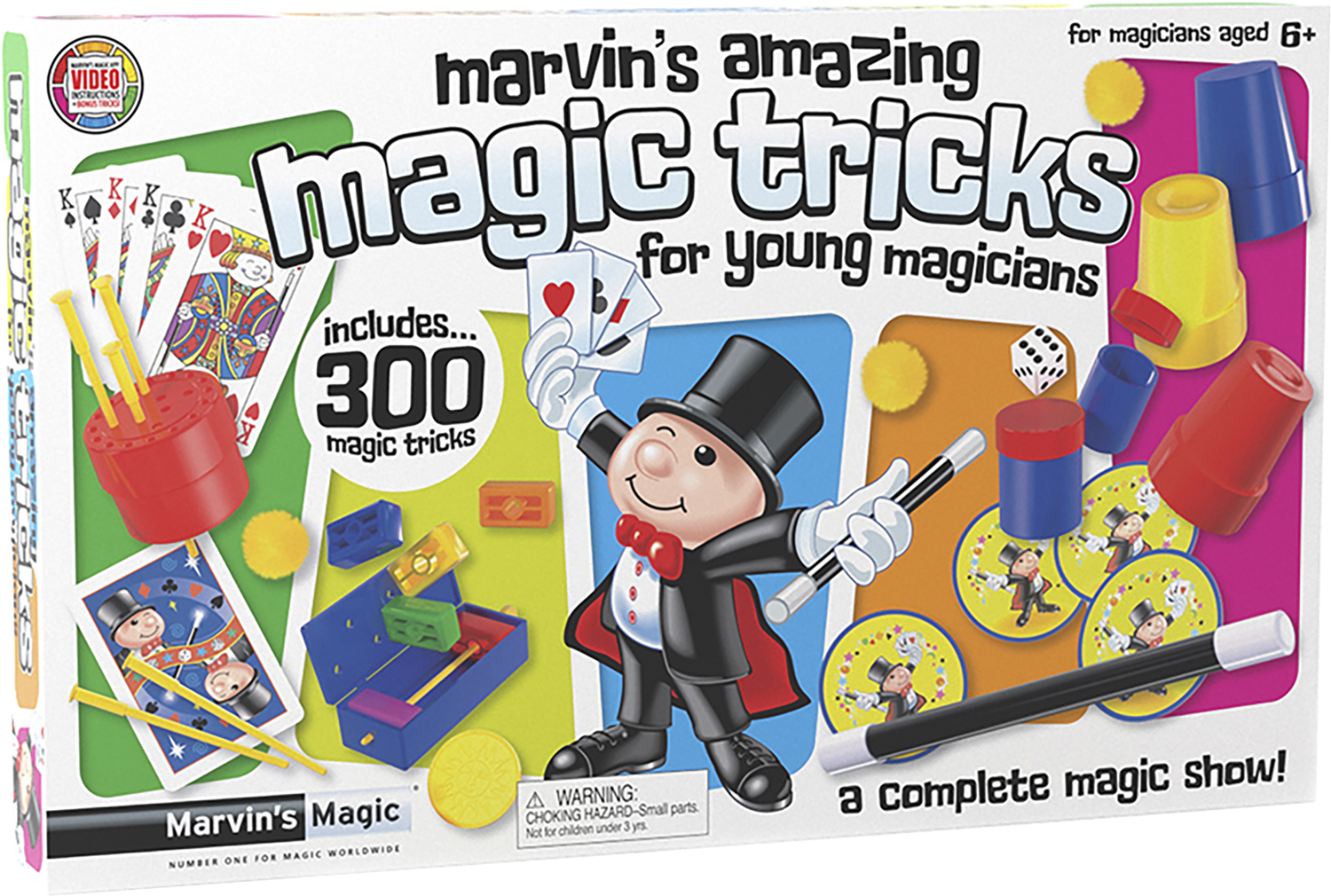 Tryllesæt med 300 magiske tricks, som er lette at lære og udføre. Velegnet til begyndere og den helt unge tryllekunstner.Inklusiv tydeligt illustreret instruktionshæfte plus videoinstruktioner og augmented reality via den gratis Marvins Magic app.En fanta
