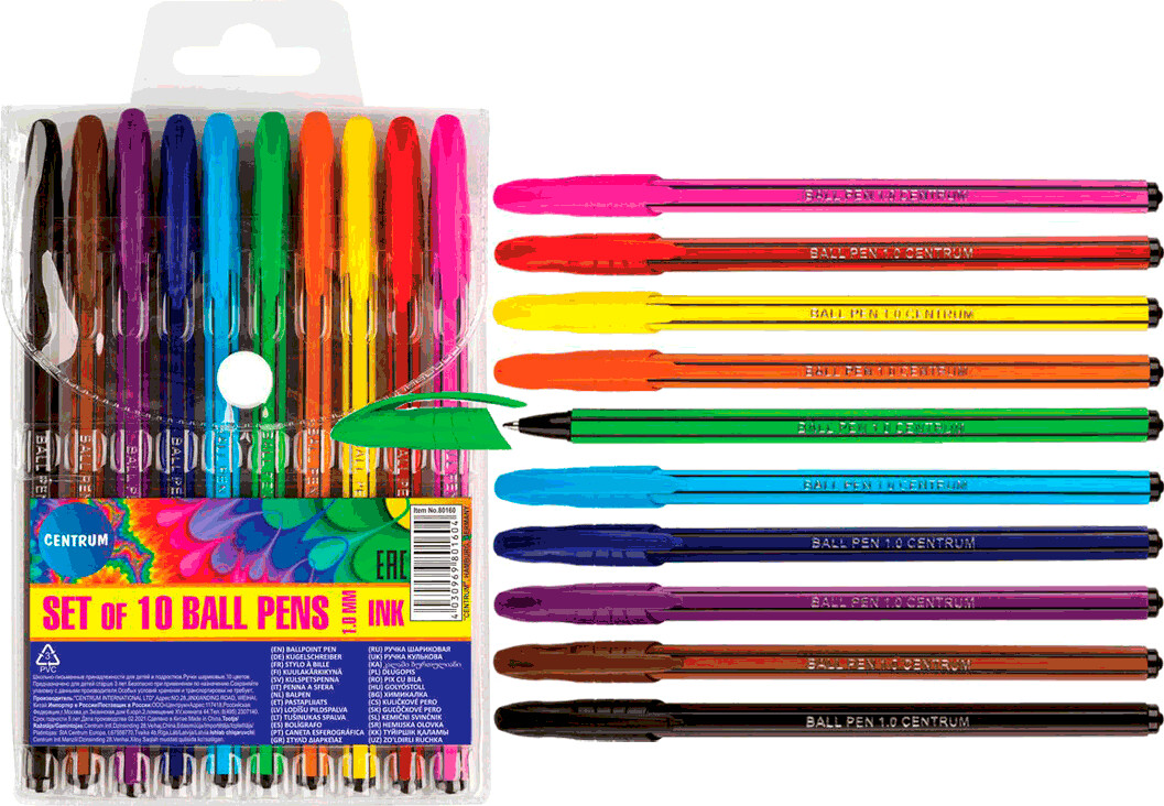 Kuglepen 10 Stk 10 Forsk Skrivefarver - Centrum