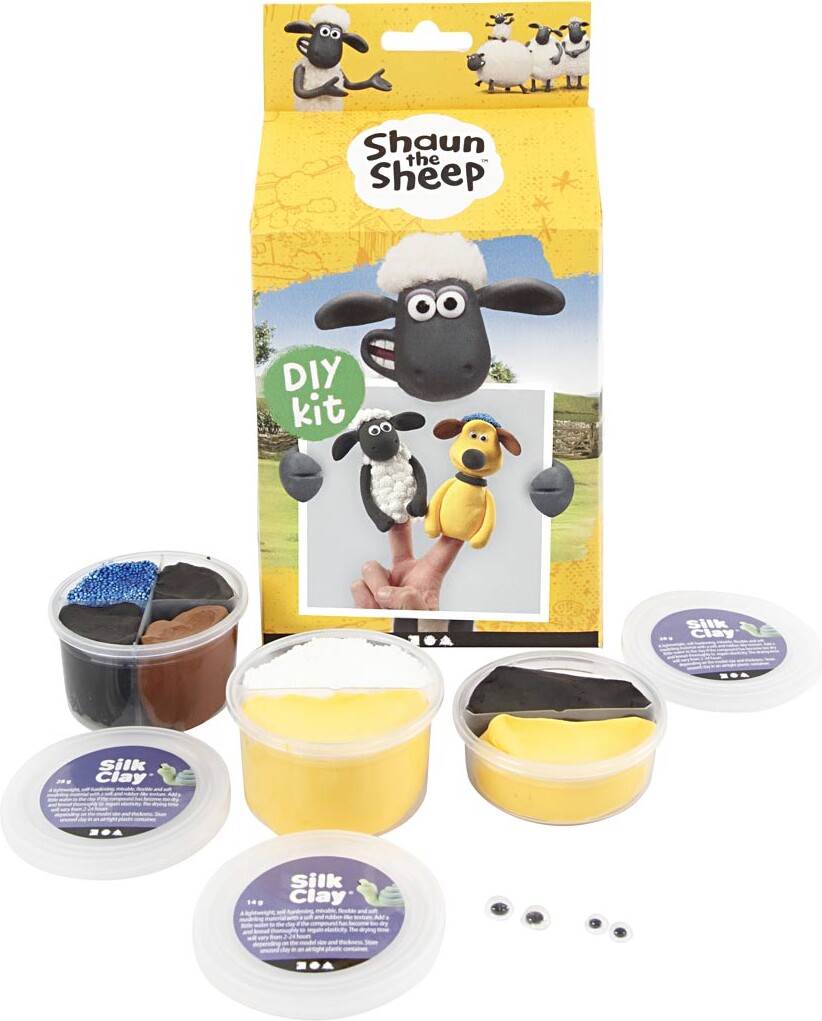Et fint lille kit til modellering af fingerdukker! Kittet giver dig og dine børn mulighed for selv at modellere søde fingerdukker, som forestiller Frode Får og Bitzer fra "F for Får"....
