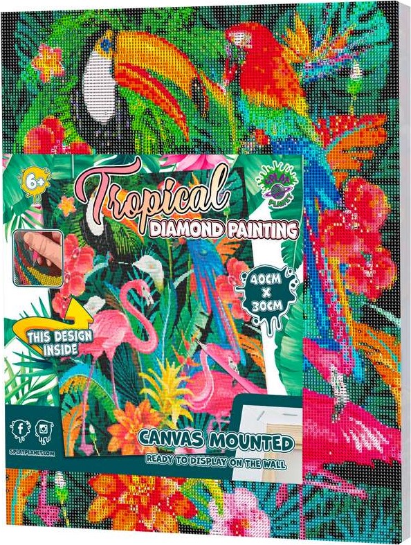 Lav din egen funklende og smukke diamantkunst med dette Tropical Diamond Art Kit fra Splat Planet. Hvert Diamond Art-design har en skabelon med bogstaver, så du nemt kan vælge farve og placering for...