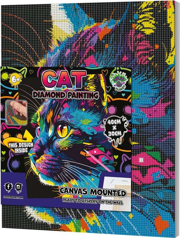 Diamond Art På Lærred 30x40cm, Kat (ny) - Splat