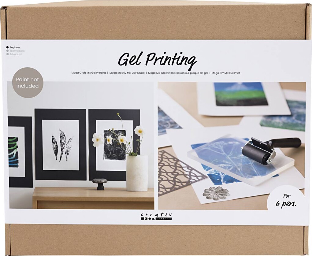 Med dette mix kan du lave unikke kunstryk sammen med andre. Indeholder nok materialer til 6 personer. Perfekt til workshops, skoleklasser, kreahold, børnefødselsdage eller venindehygge