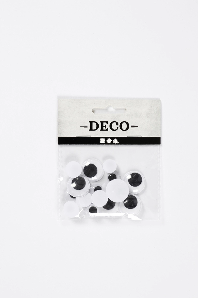 Rulleøjne Dia. 12+14+20 mm. 18 ass. rulleøjne med flad bagside og bevægelige pupiller.