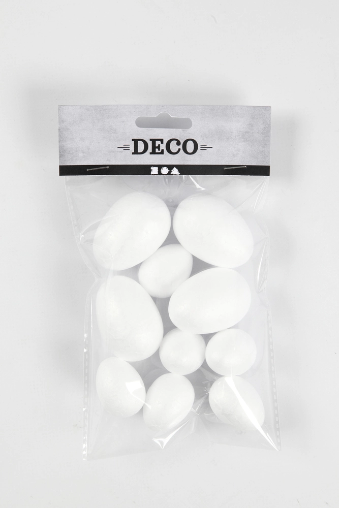 Ęg hvide af styropor 10 stk i pose h 35X48 mm b 25x35 mm