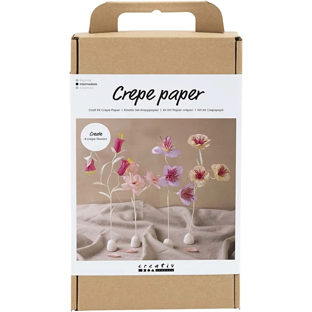 Med dette kit kan du lave smukke crepeblomster på fod, som pynter supergodt på både middagsbordet og reolen. Indeholder alle de materialer du skal bruge, og al den vejledning du behøver.Mangler du blomstermagi i din indretning, så er dette kit perfekt. Du