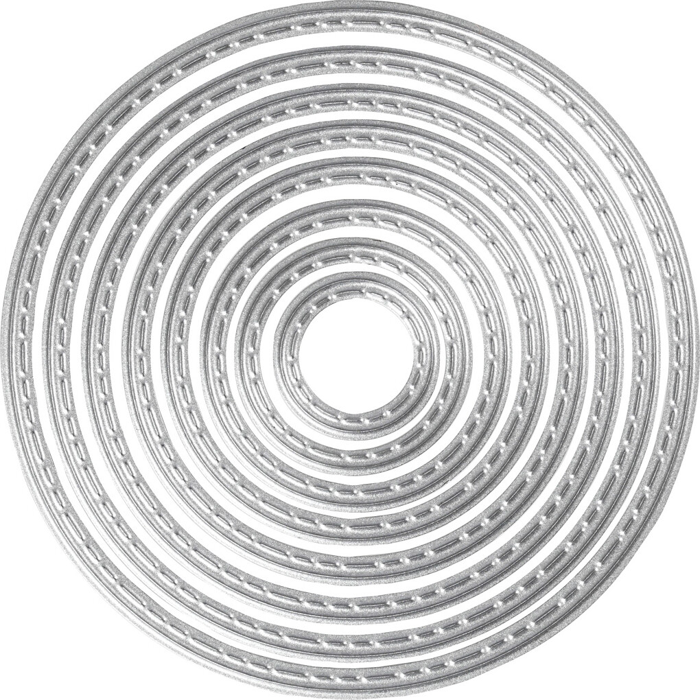 Få en flot skære- og prægeskabelon, der lader dig dekorere dit kreative projekt med fine cirkler....