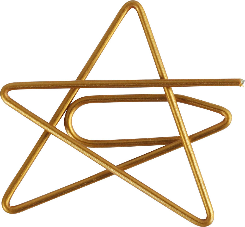 Fine guldfarvede klemmer af metal til at holde sammen på papir. Klipsene er udformet som en figur...