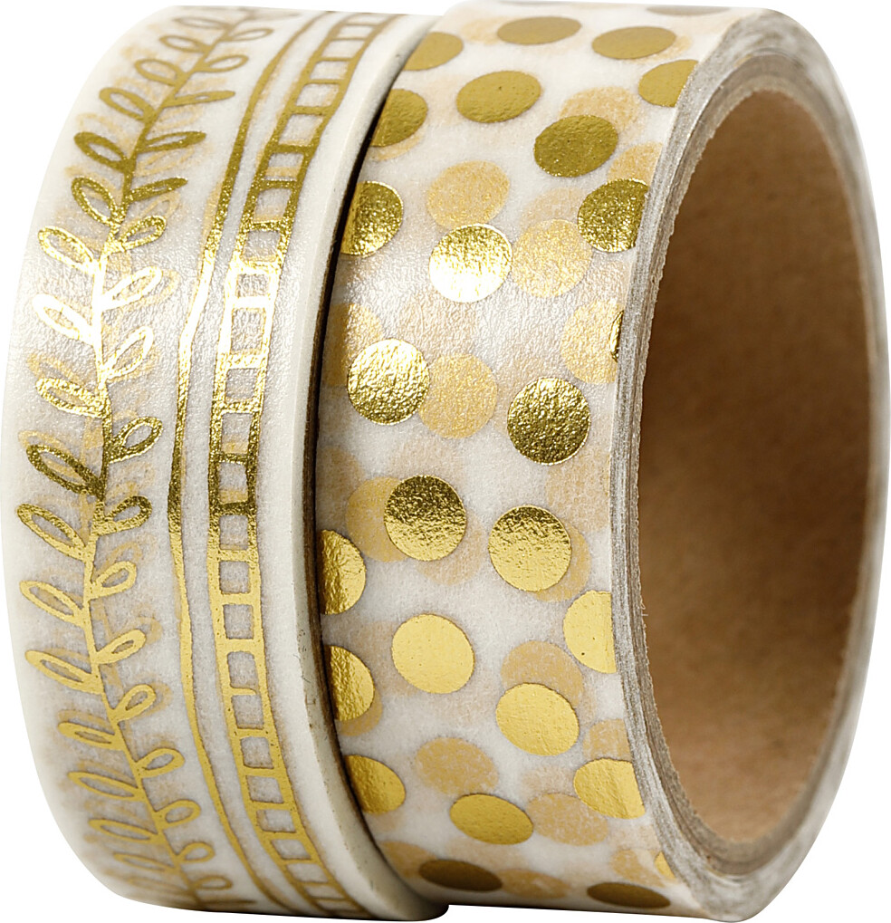 Masking Tape - Ranke Og Prikker - Folie - B 15 Mm - Guld - 2x4 M