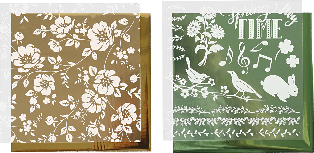Sæt med dekorationsfolie med metallisk overflade og design limark. Gnub limmotiverne fast på...