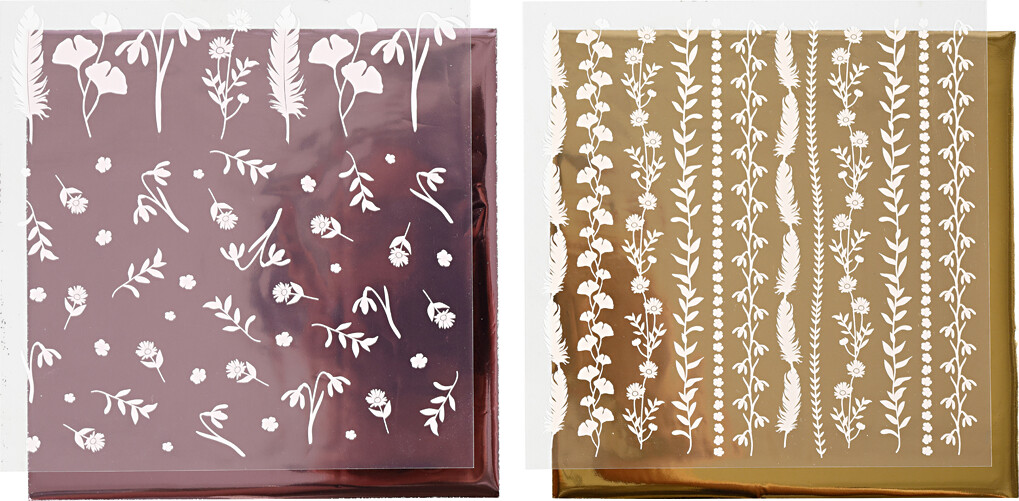 Sæt med dekorationsfolie med metallisk overflade og design limark. Gnub limmotiverne fast på...