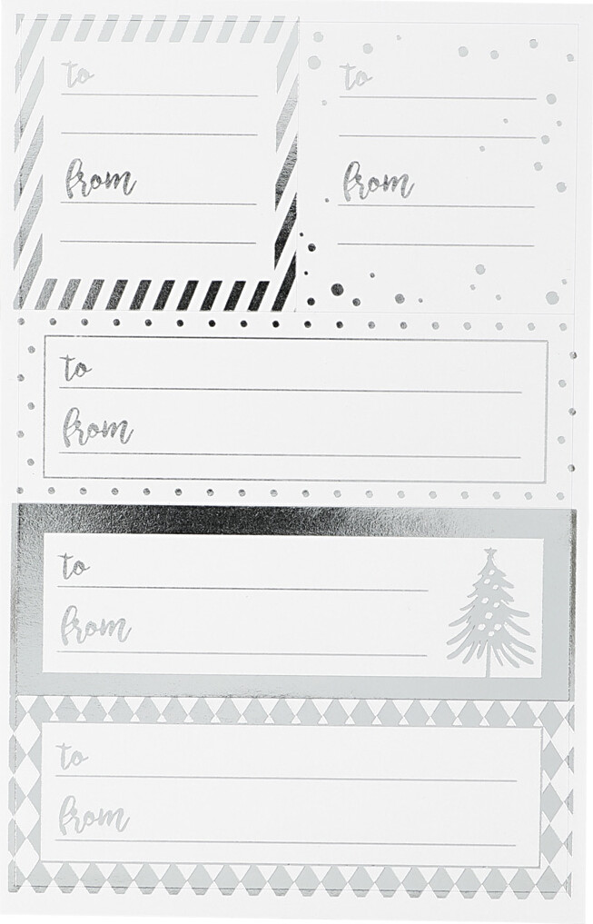 Til- Og Fra Mærker - 9x14 Cm - Str. 42x39+84x29 Mm - Sølv - Hvid - 4 Ark