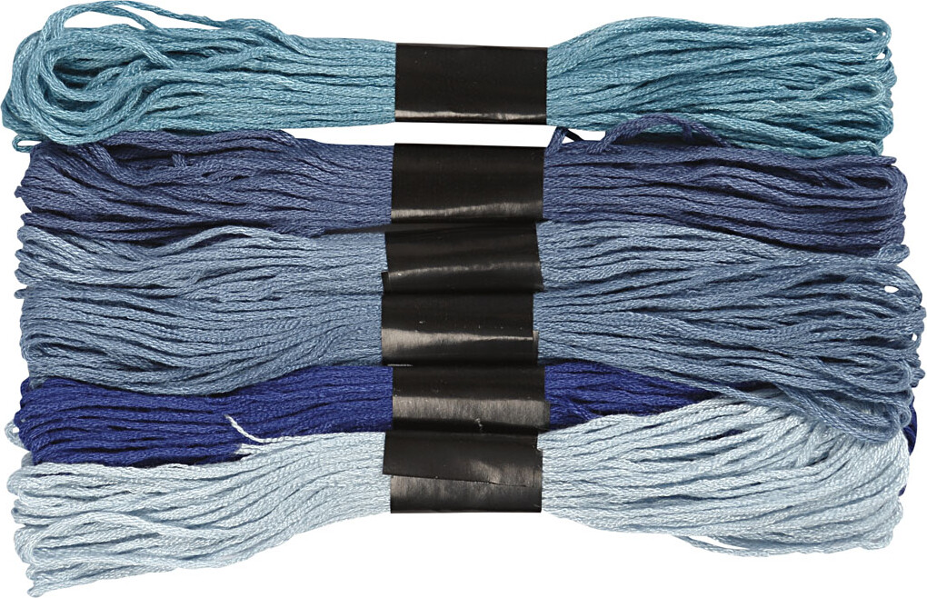 Broderigarn - 6 Farver - Blå - 6-trådet - Bomuld - Harmoni Broderigarn