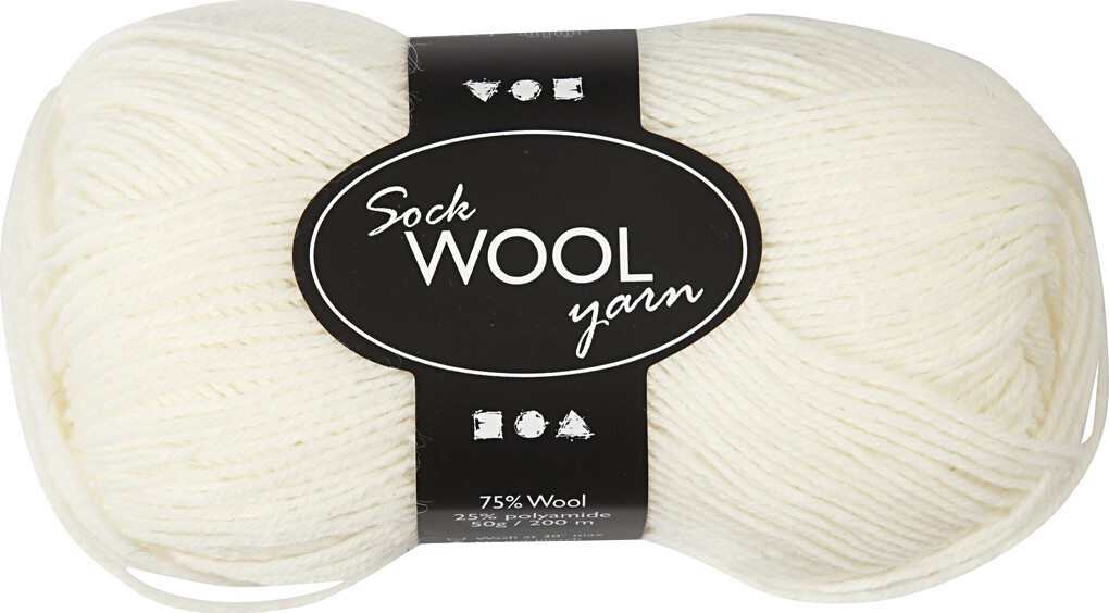 Strømpegarn - Uld+nylon - L 200 M - Råhvid - 50 G
