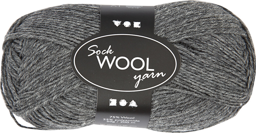 Strømpegarn - Uld+nylon - L 200 M - Mørk Grå - 50 G