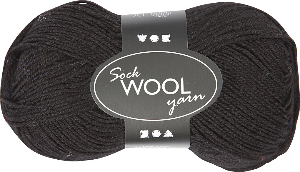Strømpegarn - Uld+nylon - L 200 M - Sort - 50 G