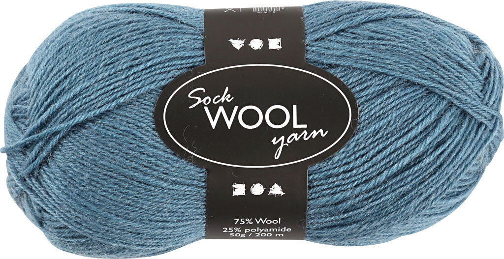 Strømpegarn - Uld+nylon - L 200 M - Petroleum - 50 G