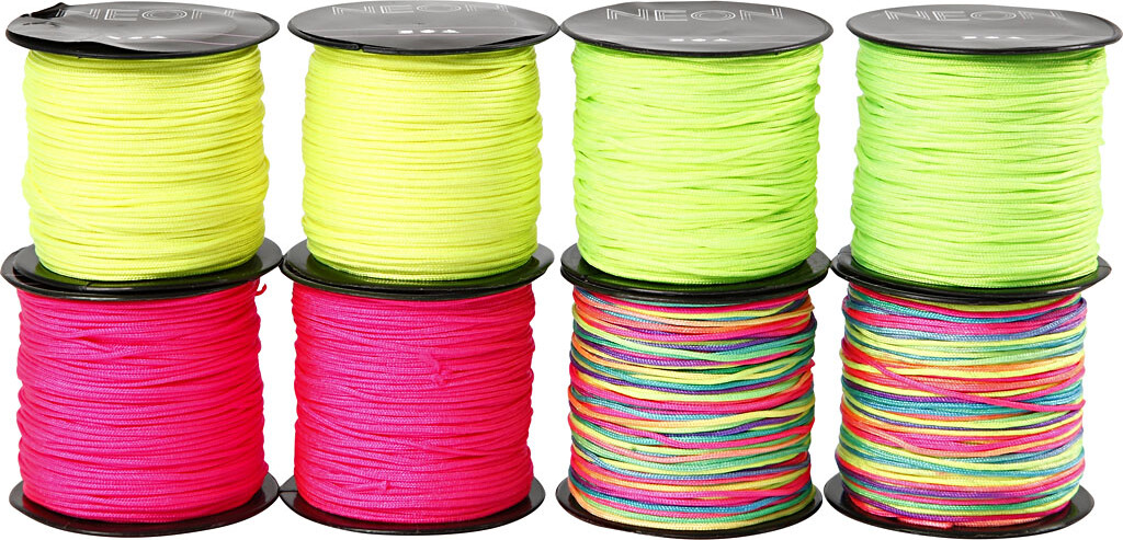 Knyttesnor - Tykkelse 1 Mm - Neon Grøn - Neon Pink - Neon Gul - Neonmix - 8x28 M