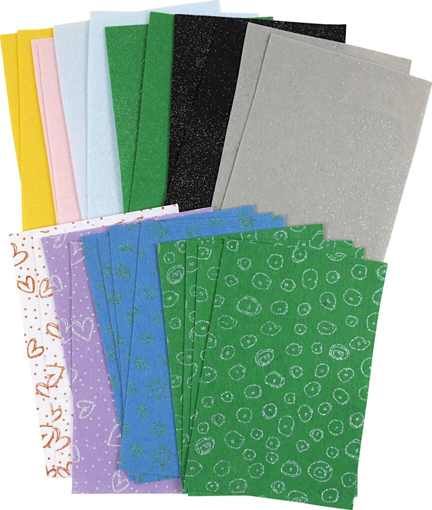Lad din kreativitet skinne med dette assorterede hobbyfilt. Hvert sæt indeholder 24 ark, der måler...
