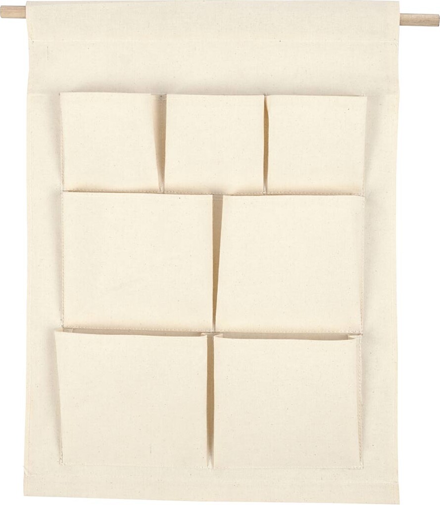 Praktisk organizer med lommer i kraftig kanvas med plastbelagt bagside for bedre stabilitet....