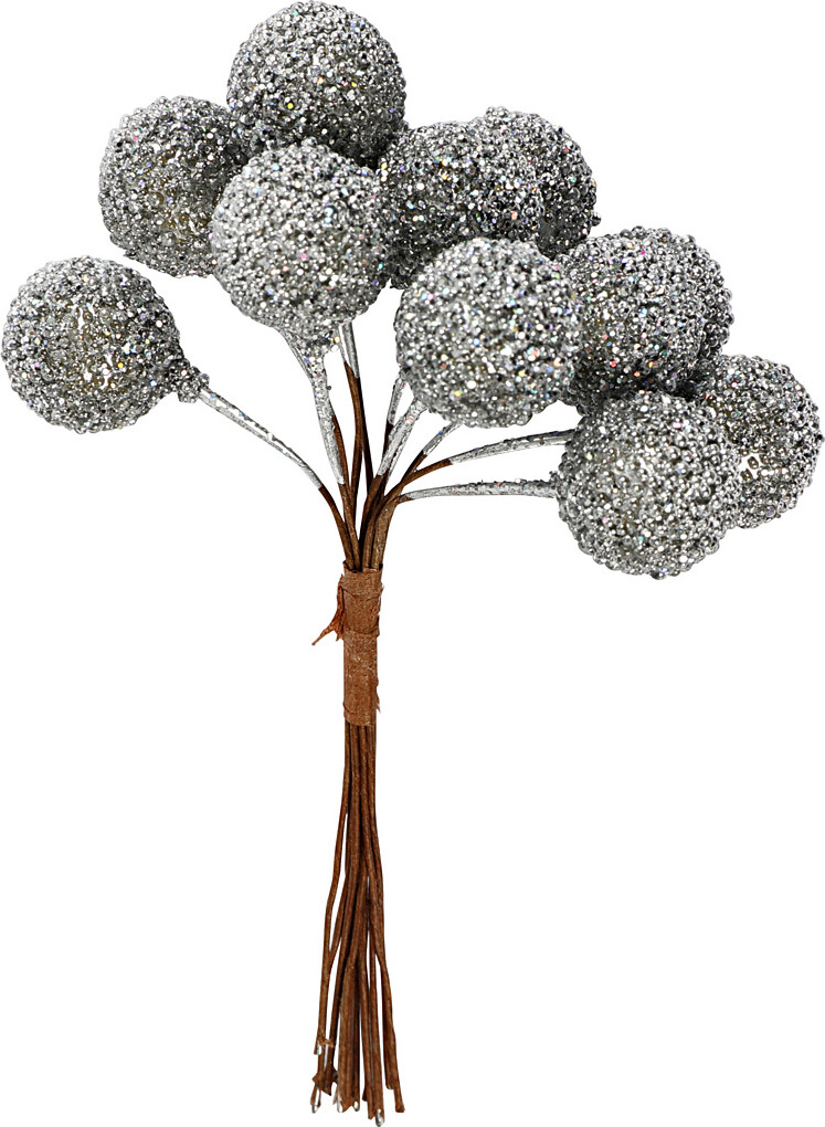 Kunstige Bær - ø 15 Mm - Sølv - 12 Stk.
