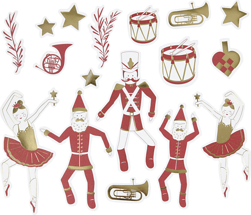 Mærkater - Str. 2,2x12,5 Cm - Guld - Rød - Hvid - 57 Stk.