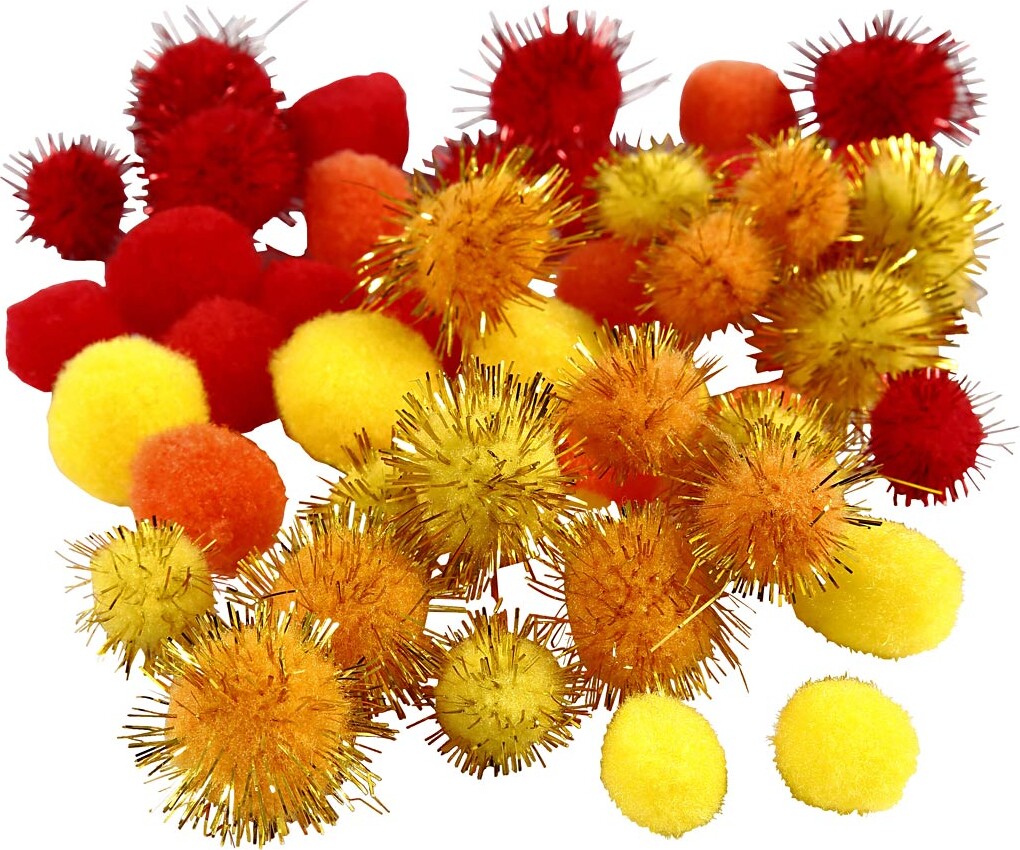 Pomponer - ø 15+20 Mm - Orange - Rød - Gul - 48 Assorterede