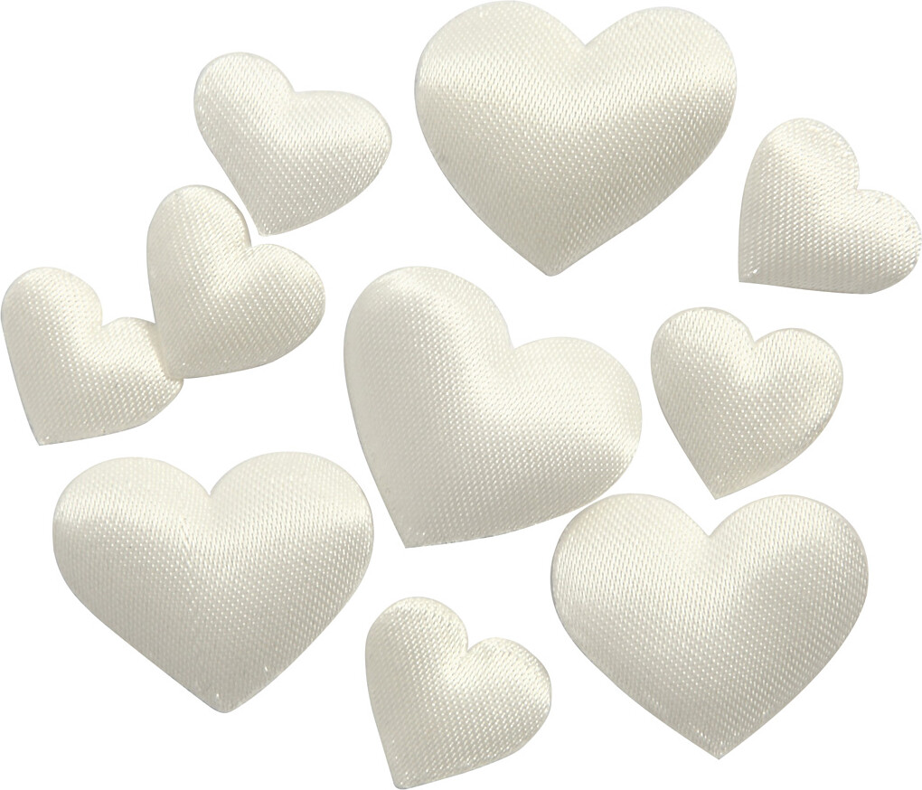 Satinhjerter - Str. 10+20 Mm - Tykkelse 1-2 Mm - Råhvid - 70 Stk.