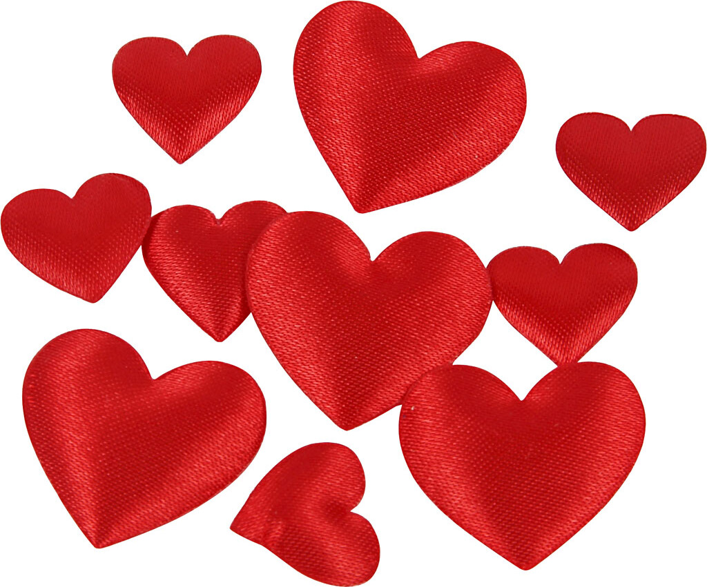 Satinhjerter - Str. 10+20 Mm - Tykkelse 1-2 Mm - Rød - 70 Stk.
