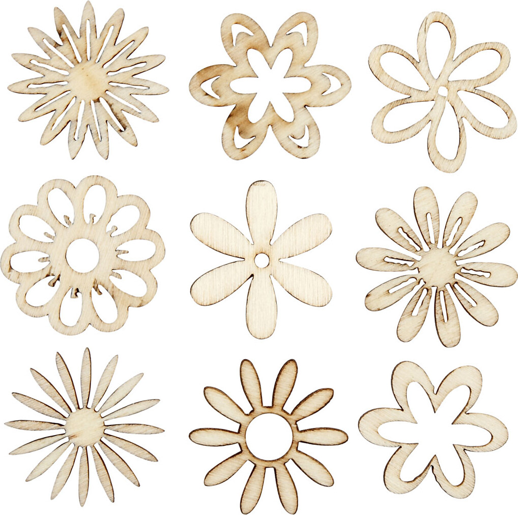 Træpynt - Blomster - Str. 28 Mm - 45 Stk.