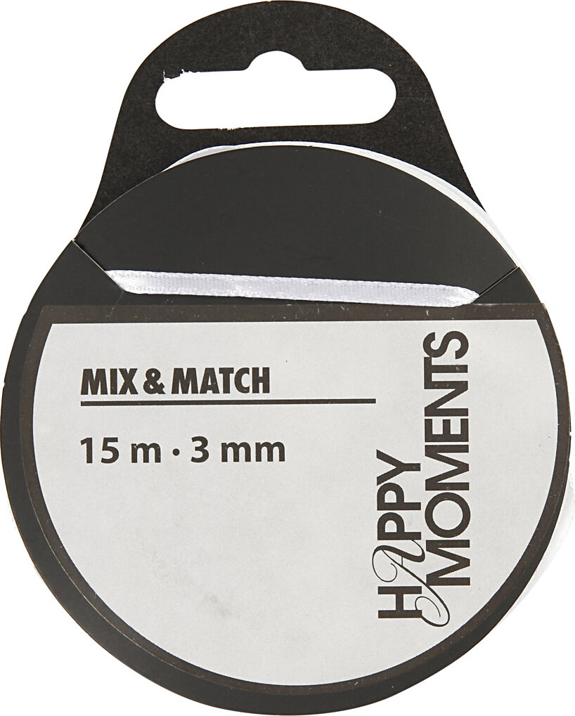Satinbånd - B 3 Mm - Hvid - 15 M