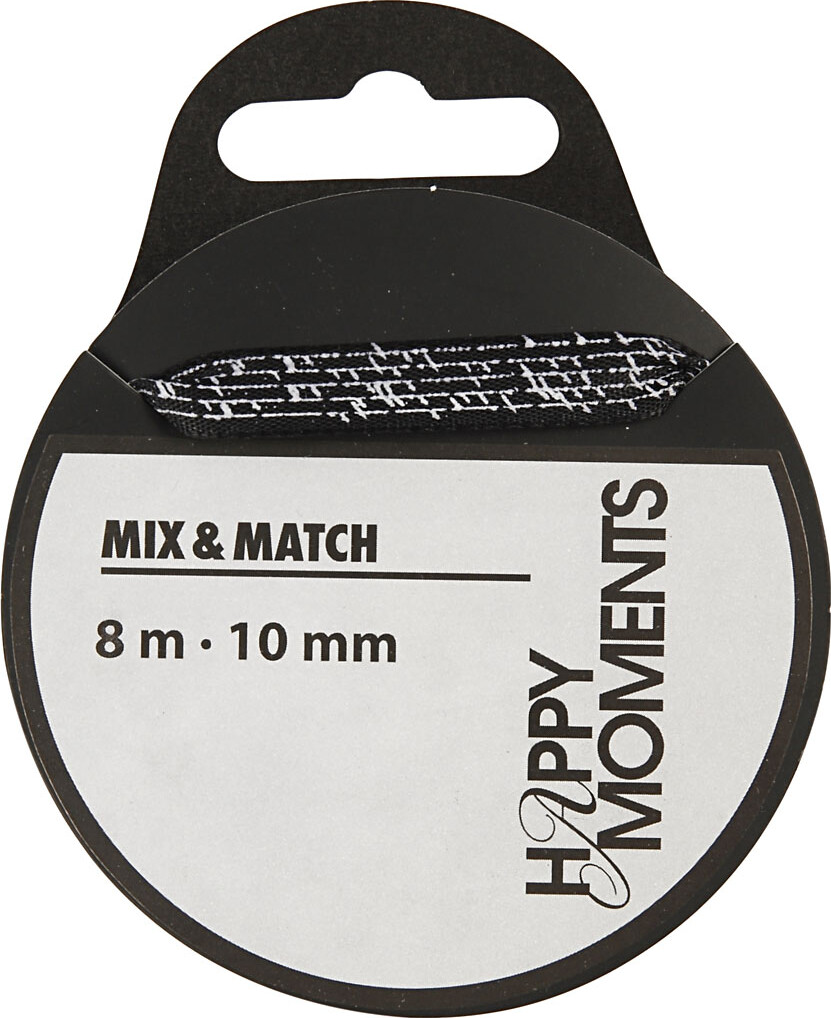 Satinbånd Med Print - B 10 Mm - Sort - 8 M