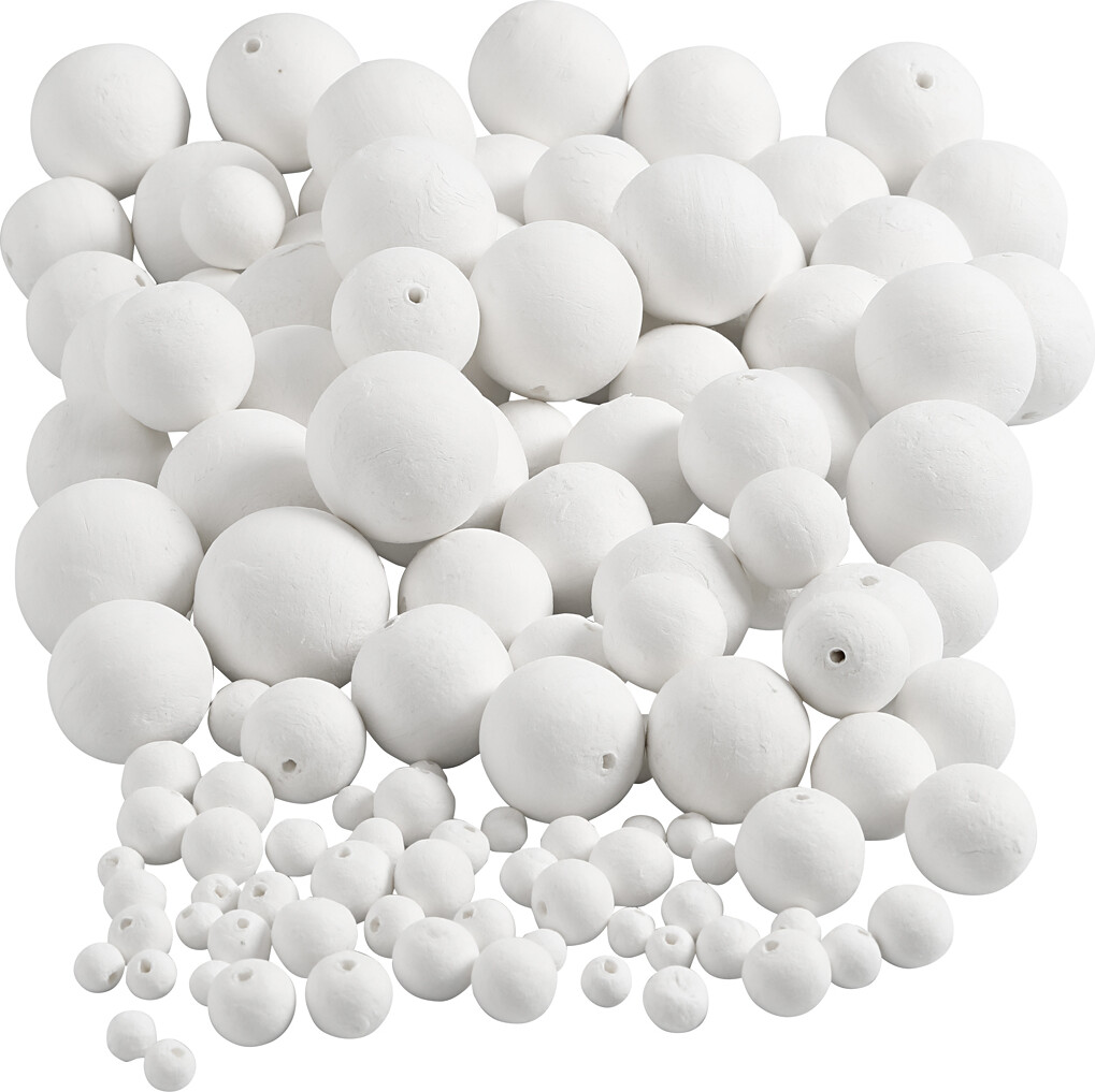 Hvide vatkugler med halvborede huller til sjove og skøre, kreative projekter. De runde vatkugler...