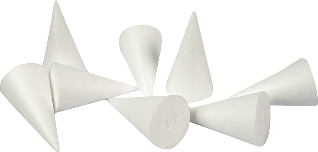 Simple, lette og hvide kegler af styropor til dit næste kreative projekt. Her får du et blankt...