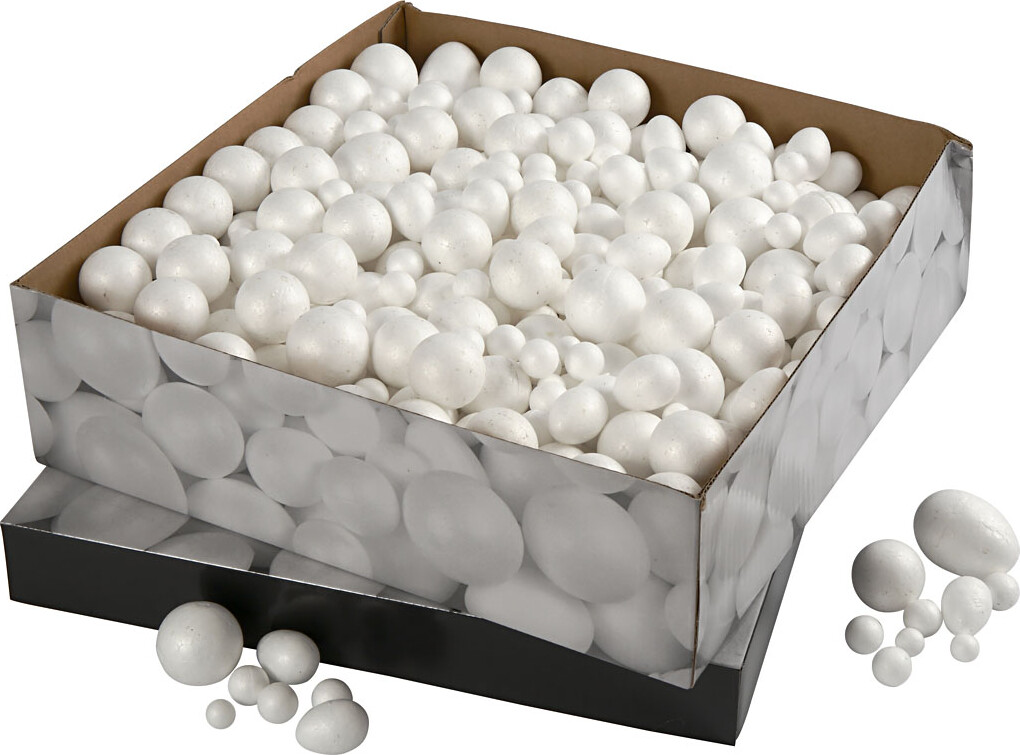 Dette sortiment indeholder 550 lette styroporkugler og -ęg i en smuk hvid farve. Der er 4...