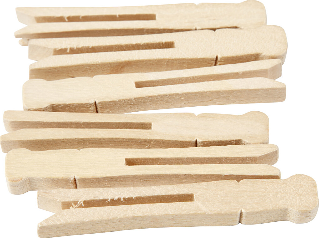 Udforsk en verden af kreativitet med 50 stk. store, flade tøjklemmer i lyst træ. Disse små...