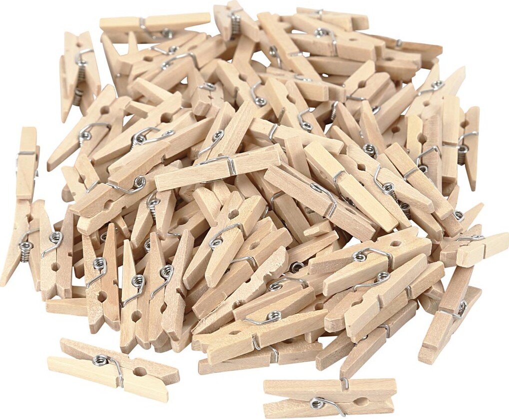 Udforsk en verden af kreativitet med 100 stk. klassiske tøjklemmer i lyst træ. Disse små...