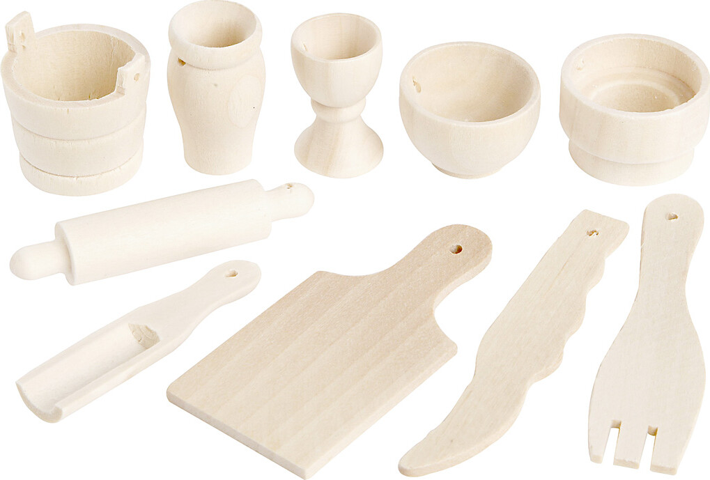 Disse 10 mini køkkenredskaber i træ er perfekte til dekoration af dit køkken eller til dit næste...