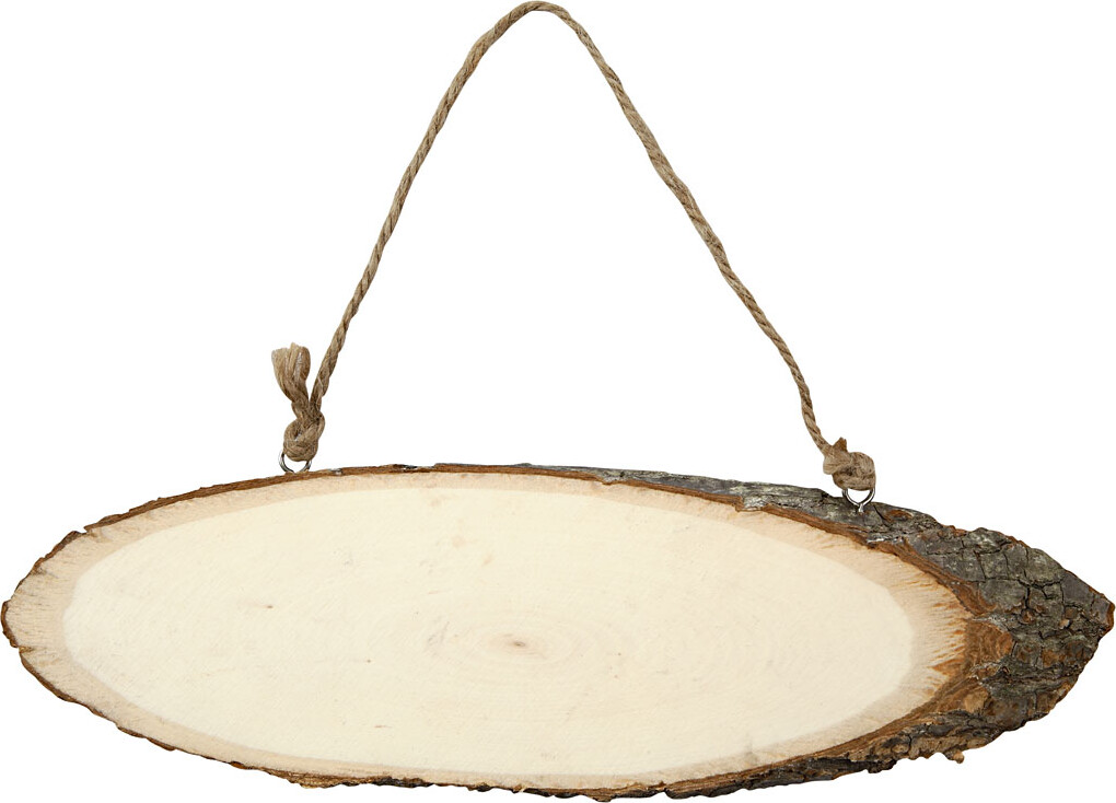 Dette dørskilt er lavet af en skråtskåret træskive med barkkant, og det har en højde på 6-10...