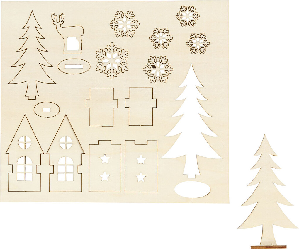 Saml-selv Træfigur - Hus,træ - Hjort - L 15,5 Cm - B 17 Cm