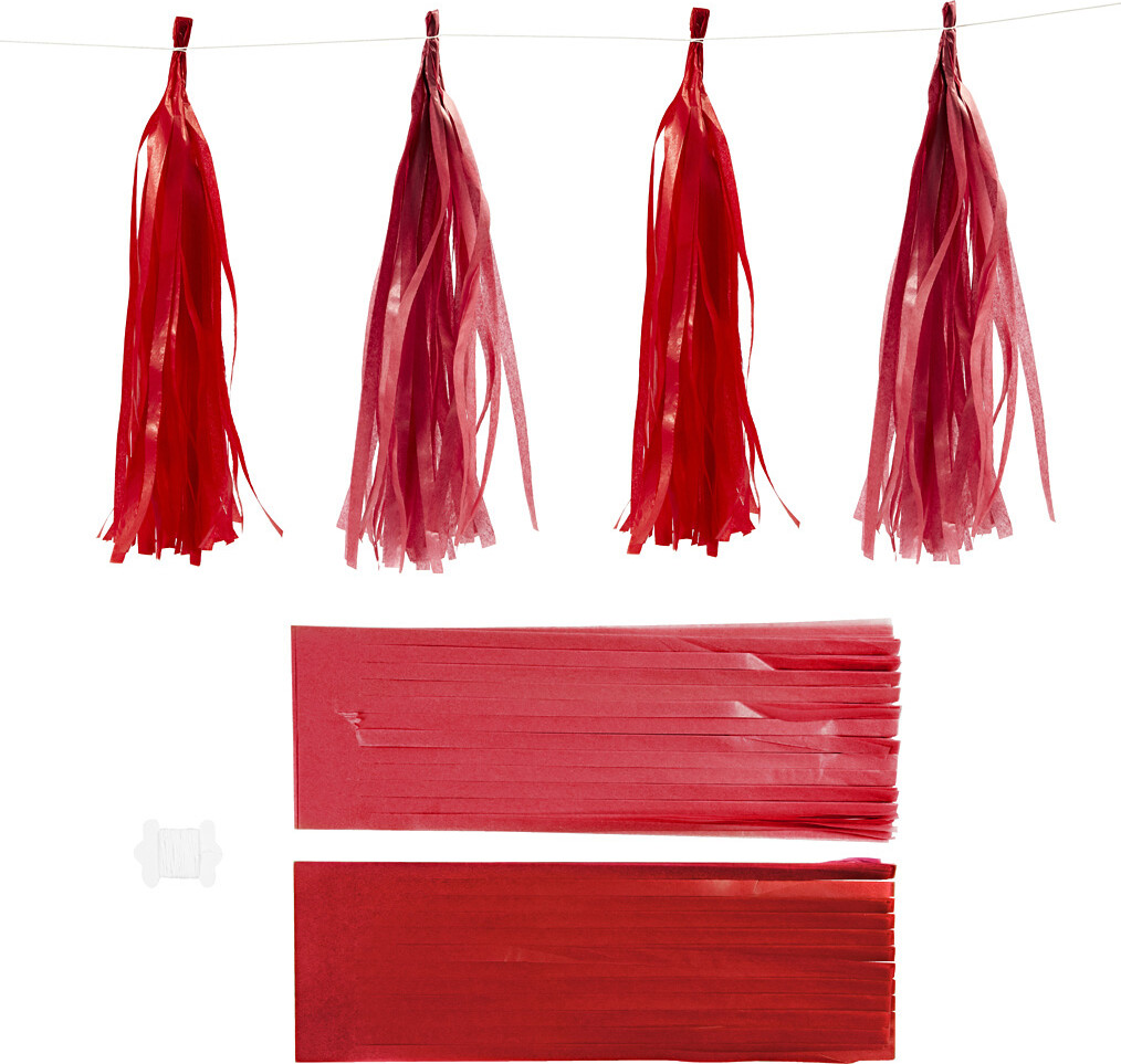 Fint silkepapir i ark med smalle strimler på hver side. Papiret kan bruges til at pynte på...
