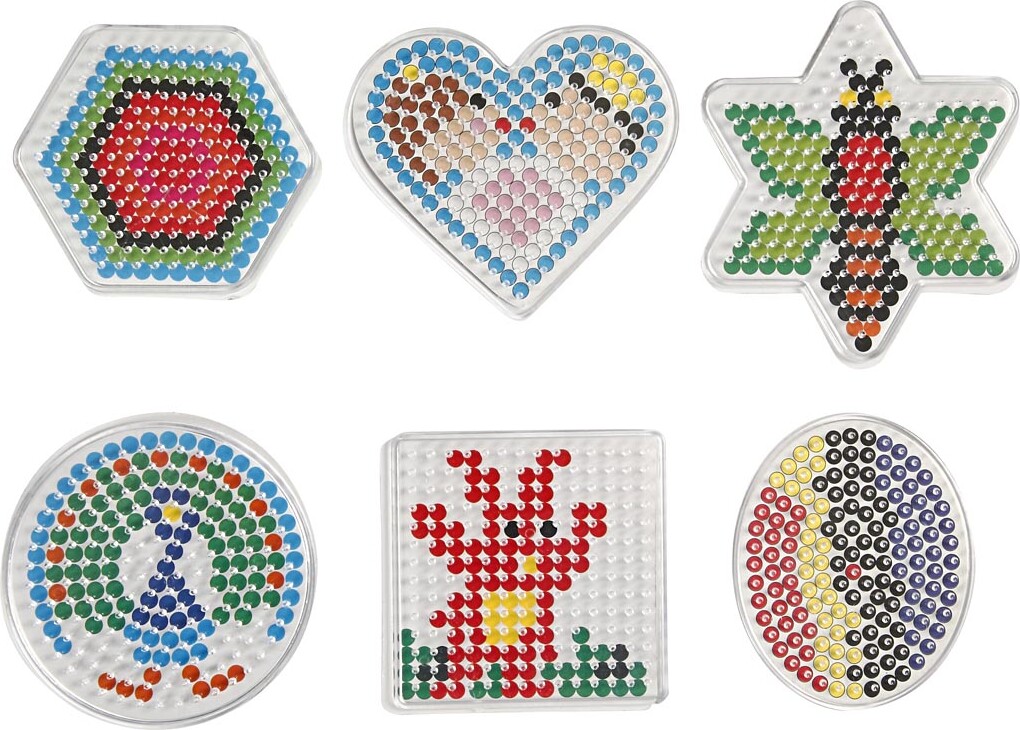 Perleplade - Oval Hjerte Hexagon Cirkel Firkant Stjerne - 6 Stk.