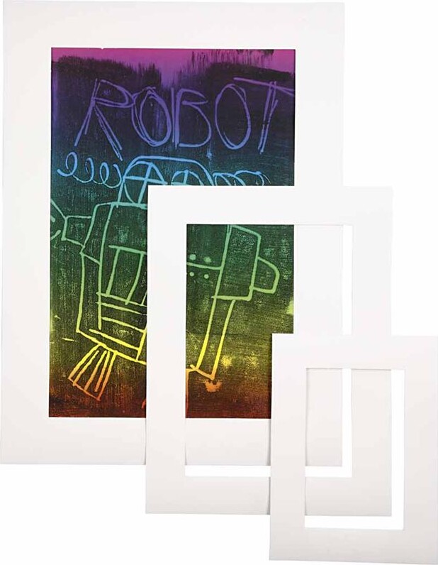Passepartoutrammer - A3,a4,a5 - Str. 17x23 + 25x34 + 35x48 Cm - Tykkelse 0,4 Mm - 270 G - Hvid - 75 Stk.