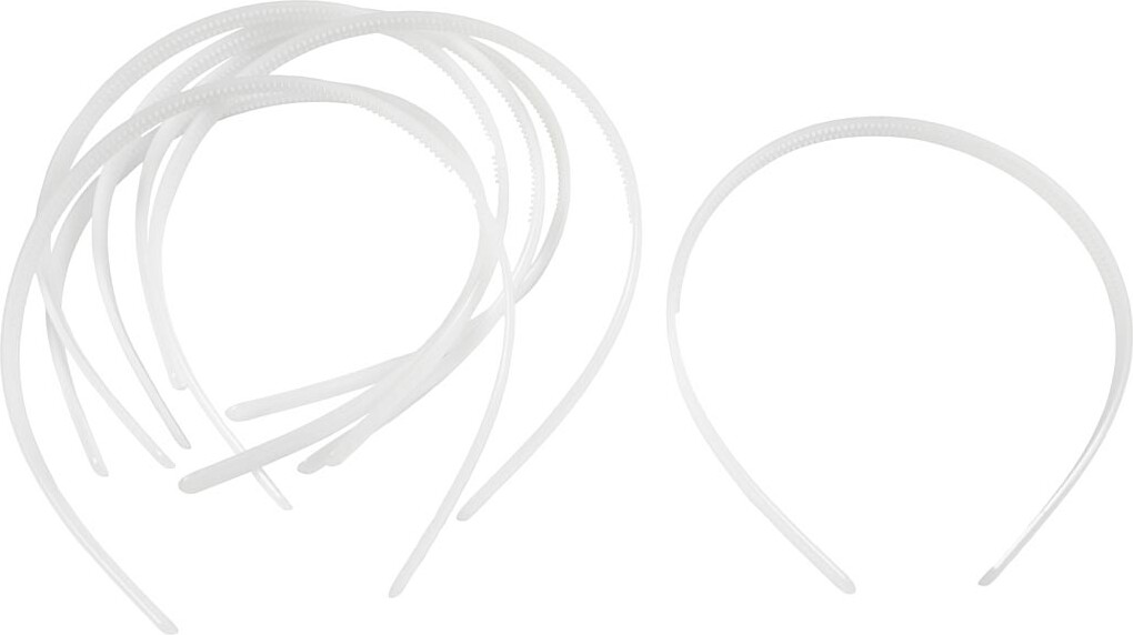 Denne pakke indeholder 20 smalle hårbøjler i plast med en bredde på 8 mm. Hårbøjlerne er i...