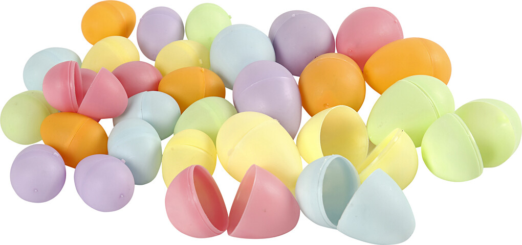 Gør dig klar til en kreativ påskefest med to-delte plastæg uden huller, der er opdelt på tværs....
