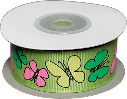 Dekobånd Grøn M/sommerfugle 25mm 10m - Polyester