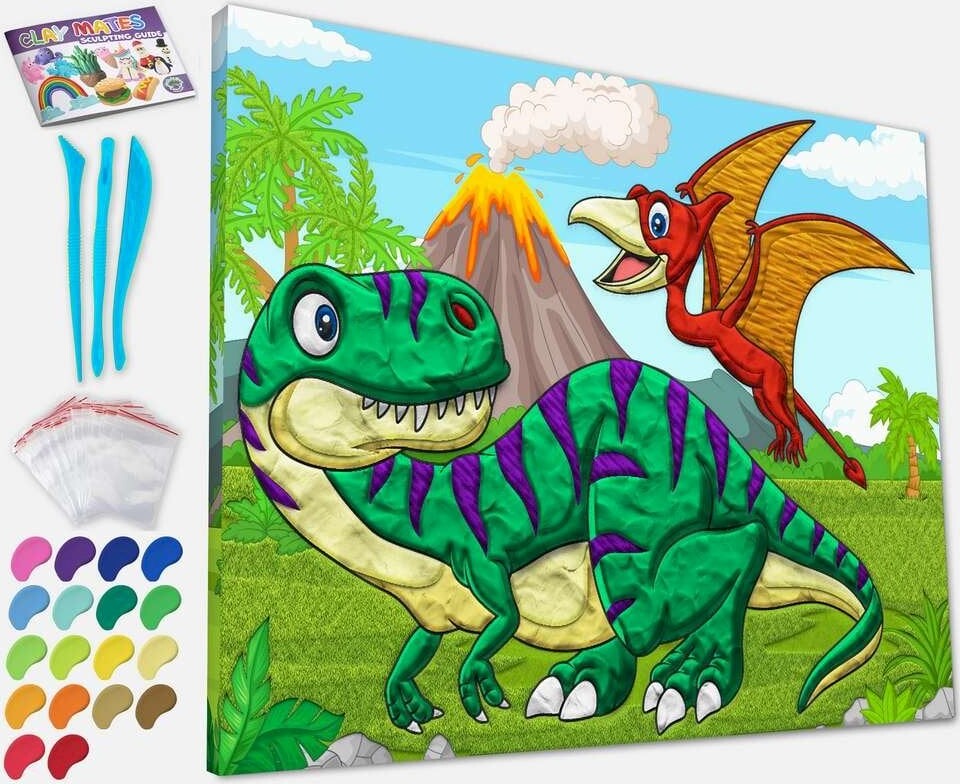 Clay Painting På Lærred - 30x40 Cm - Dinosaurer - Splat
